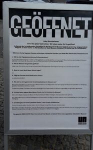 Ein Besuch ist vorerst allerdings nur eingeschränkt möglich. Es dürfen sich nur 20 Besucher*Innen gleichzeitig im Museum aufhalten. Ein eigener Mund-Nasen-Schutz muß getragen werden.