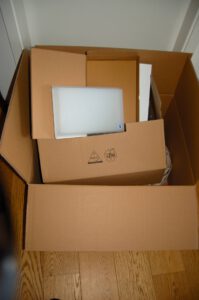 Der Liefer-Service brachte ein 75 x 55 x 33 cm großes Paket. Darin enthalten viel Packpapier und….