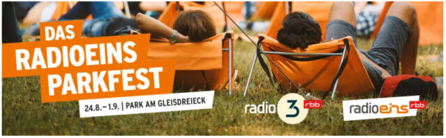 Es ist unglaublich, aber es ist wahr: Das radioeins Parkfest kommt zurück! So wird der Sommer gleich um neun besondere Parkabende und -tage schöner. Vom 24. August bis zum 1. September gibt es im Park am Gleisdreieck zahlreiche Konzerte, Comedy, Lesungen, Poetry, Magie, Sport und und und…