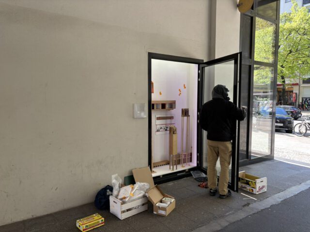 In einem Schaufenster um Durchgang zu den Mercator-Höfen entsteht eine Installation