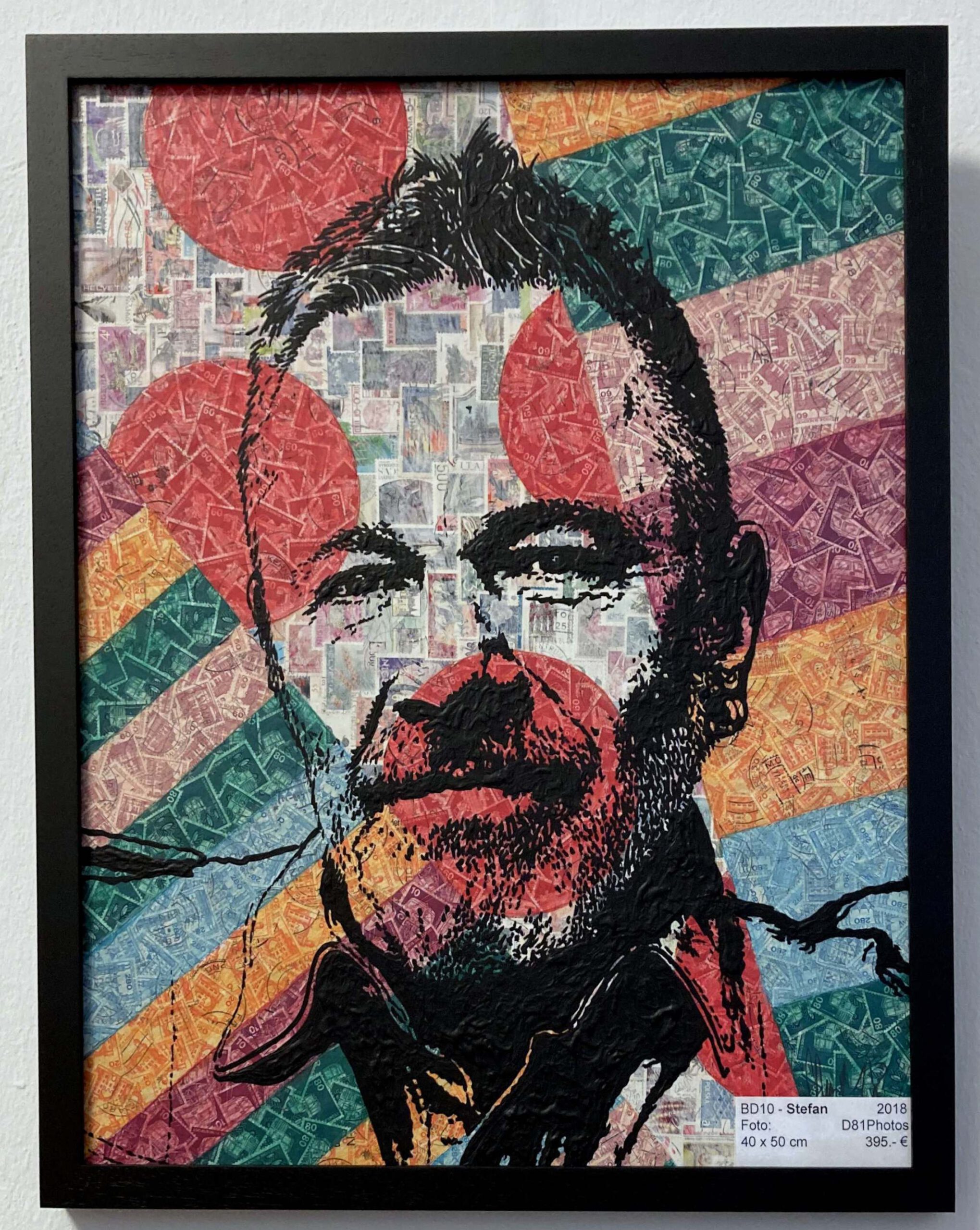 „Stampagen“, nennt er seine Collagen aus den ganz gewöhnlichen Briefmarken, die er von Hand übermalt. Zu Hause ist er in Berlin-Schöneberg. 2012 hatte er in Berlin seine 700. Ausstellung.