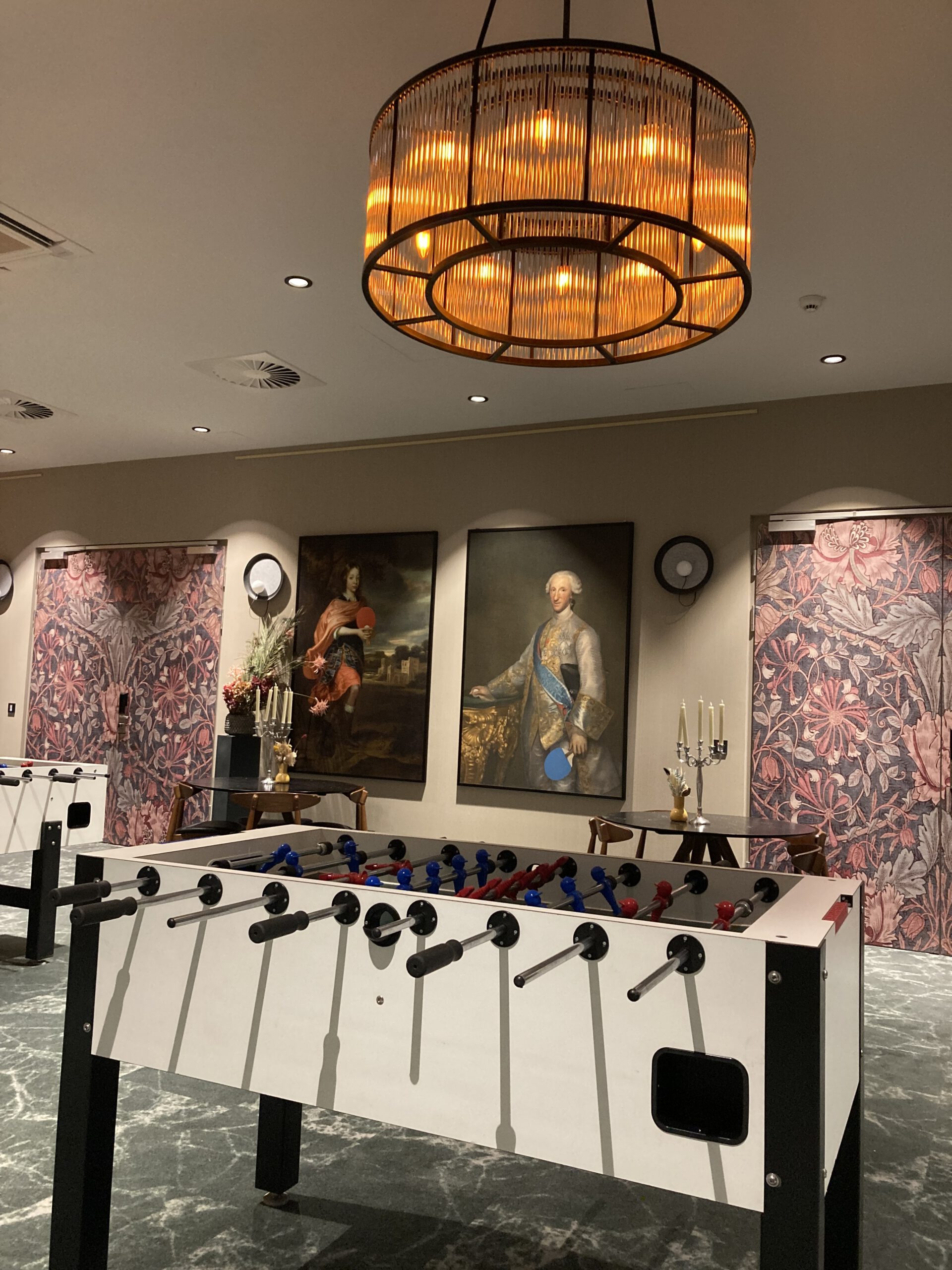 Eigentlich wirkt der gesamte Erdgeschoss-Bereich (einmal abgesehen vom Veranstaltungstrakt ab) am ehesten wie ein Marktplatz, hier eine von allen vier Seiten offene Bar („Lütze“), dort Sitzecken, Sofas, Tische und Stühle unterschiedlicher Stilarten und Komfort-Grade, zum Essen, Arbeiten, Reden, Chillen; ein Innenhof-Café fernab des Straßenlärms des Lützowplatzes und der ihn umgebenden Straßen. Kunst, vornehmlich plakative „Wandmalereien“, die heute „Urban Art“ und „Murals“ heißen und Beziehungen herstellt zum nahen Nollendorf-Kiez, Video-Installationen, bunte Kunst-Bäume und -Räume, ein Königlicher Tischtennis-Club mit Kicker-Möglichkeit, eine Kunstgalerie oberhalb des Marktplatzes, ein Skating-Club auf dem Dach.
