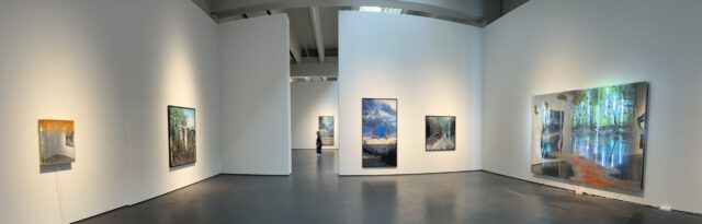 Auf der gegenüberliegenden Seite der Höfe, in der ehemaligen Villa von Anton von Werner (1843-1915), zeigt im 2. Obergeschoss die Galerie J+ (Jarmuschek + Partner) die Ausstellung „Thinking about Feeling“ von Katharina Stadler (Jahrgang 1995), polychrome Acryl-Bilder auf Baumwolle, die an Mark Rothko (1903-1970) erinnern.