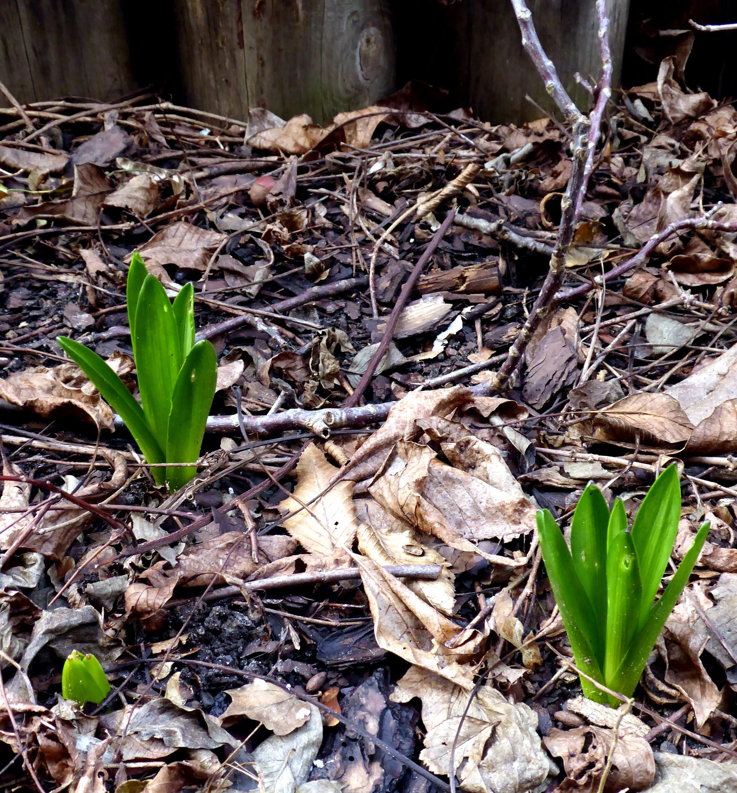 Ich sehe die grünen Spitzen der Hyazinthen schon keck aus welkem, braunem Laub herausschauen, ein kleiner Vorgeschmack auf den Frühling.