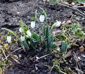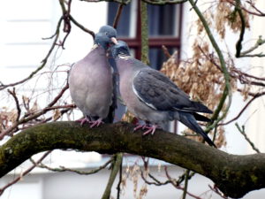 Ein Ringeltaubenpaar auf der Esche gegenüber gurrt und putzt sich gegenseitig das Gefieder und im Hof werden die Schneeglöckchen bald ihre Blüten öffnen.