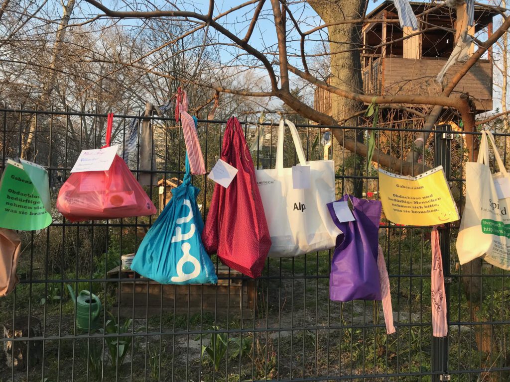 Seit gestern gibt es auch bei uns – wie an vielen anderen Stellen in unserer Stadt – einen Gabenzaun. Sie finden ihn direkt neben dem Wunschbaum am Zaun der Villa Lützow an der Ecke zur Kluckstraße. Kennen Sie das Prinzip