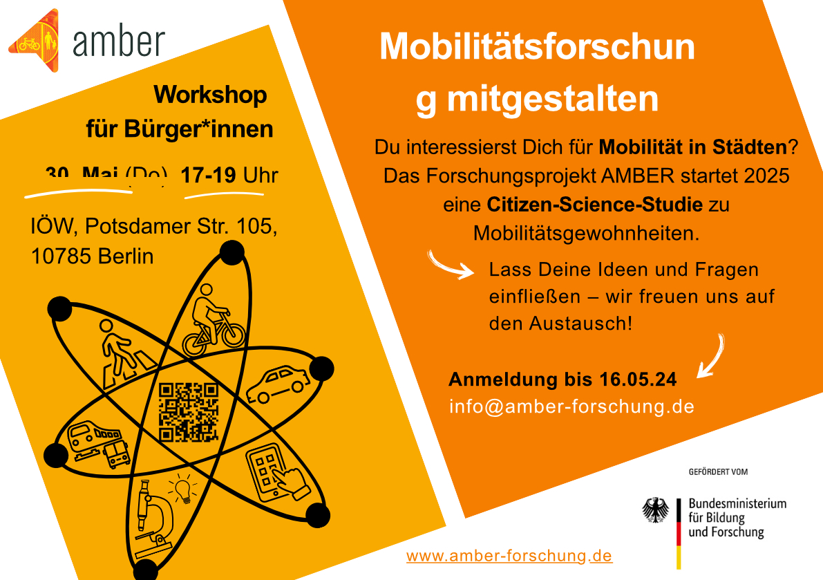 Im Rahmen des Forschungsprojektes AMBER, das die Freie Universität Berlin und das Institut für ökologische Wirtschaftsforschung gemeinsam durchführen, sollen aktuelle und zukünftige Zusammenhänge zwischen Gesundheit und Klimawandel im Kontext der (aktiven) Mobilität genauer untersucht werden. Mobilität soll hierbei auf individueller, betrieblicher, zivilgesellschaftlicher und umweltbezogener Ebene betrachtet werden. Zentrales Element des Projektes stellt eine Citizen Science Studie in Berlin im Jahr 2025 dar.