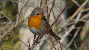 Rotkehlchen im Astwerk von vorne (Foto:URL: https://commons.wikimedia.org/wiki/)