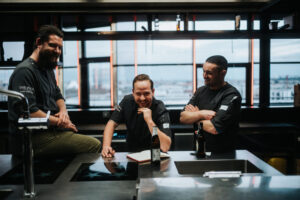GOLVET TRio_Jacob Joshua Bleiholder, Souschef (links), Sternekoch Jonas Zörner (Mitte & Stefano Martinelli (rechts) (mit freundlicher Genehmigung https://tinyurl.com/4uxa6prm)