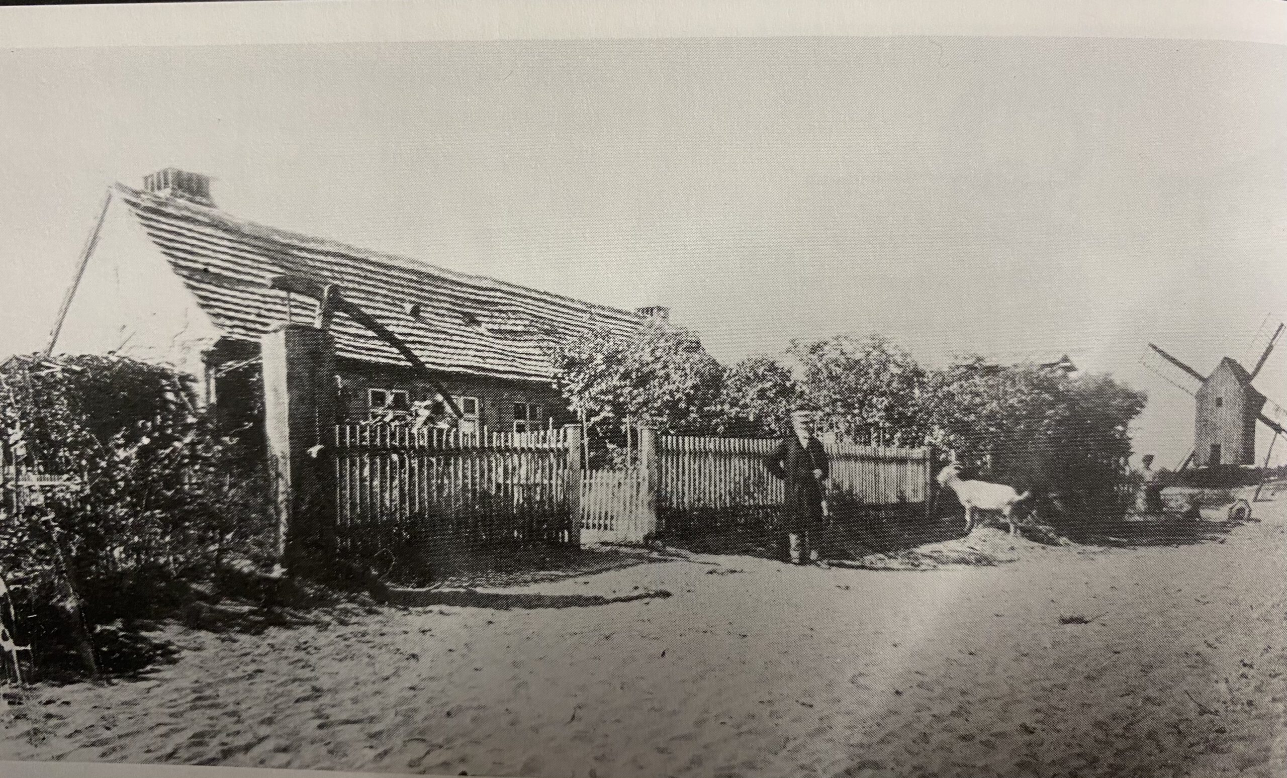 Bild 2: Das Mühlengehöft des Müllers Bobbe in der heutigen Genthiner Straße, ca. 1860 (aus: Petra Zwaka. Schöneberg auf dem Weg nach Berlin. Hrg. Bezirksamt Schöneberg von Berlin. Eigendruck, Berlin 1998, S.42)