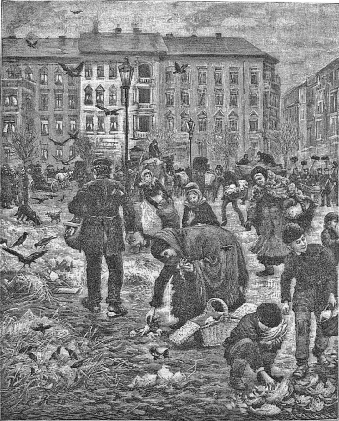 Das ist starke Sprache, Literatur eben, aber es könnte, bei Austausch der Straßennamen, durchaus an einem anderen Orte sein, noch nicht einmal notwendigerweise in Berlin, wenn auch in einer Großstadt, hilft uns also nicht, ein Bild von dem zu bekommen, was auf dem Magdeburger Platz einmal war. Ob Theodor Fontane bei seinem Blick über die Schulter zum Blumeshof und weiter zur Markthalle (siehe mitteNdran vom 18.1.2021) mehr gesehen hat, wissen wir nicht, beschrieben hat er´s leider nicht.