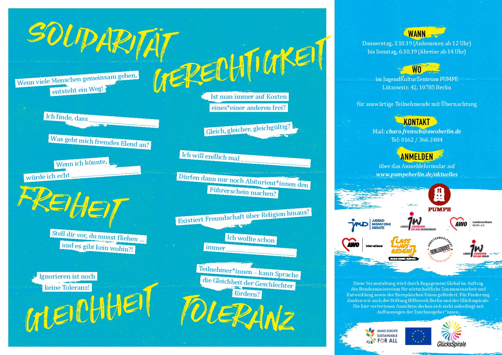 all das bietet die Jugendbegegnungswerkstatt im Jugendkulturzentrum Pumpe vom 3.10.2019 – 6.10.2019: