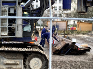 Alles zum Absichern und Ausheben der Baugrube wird vorbereitet.