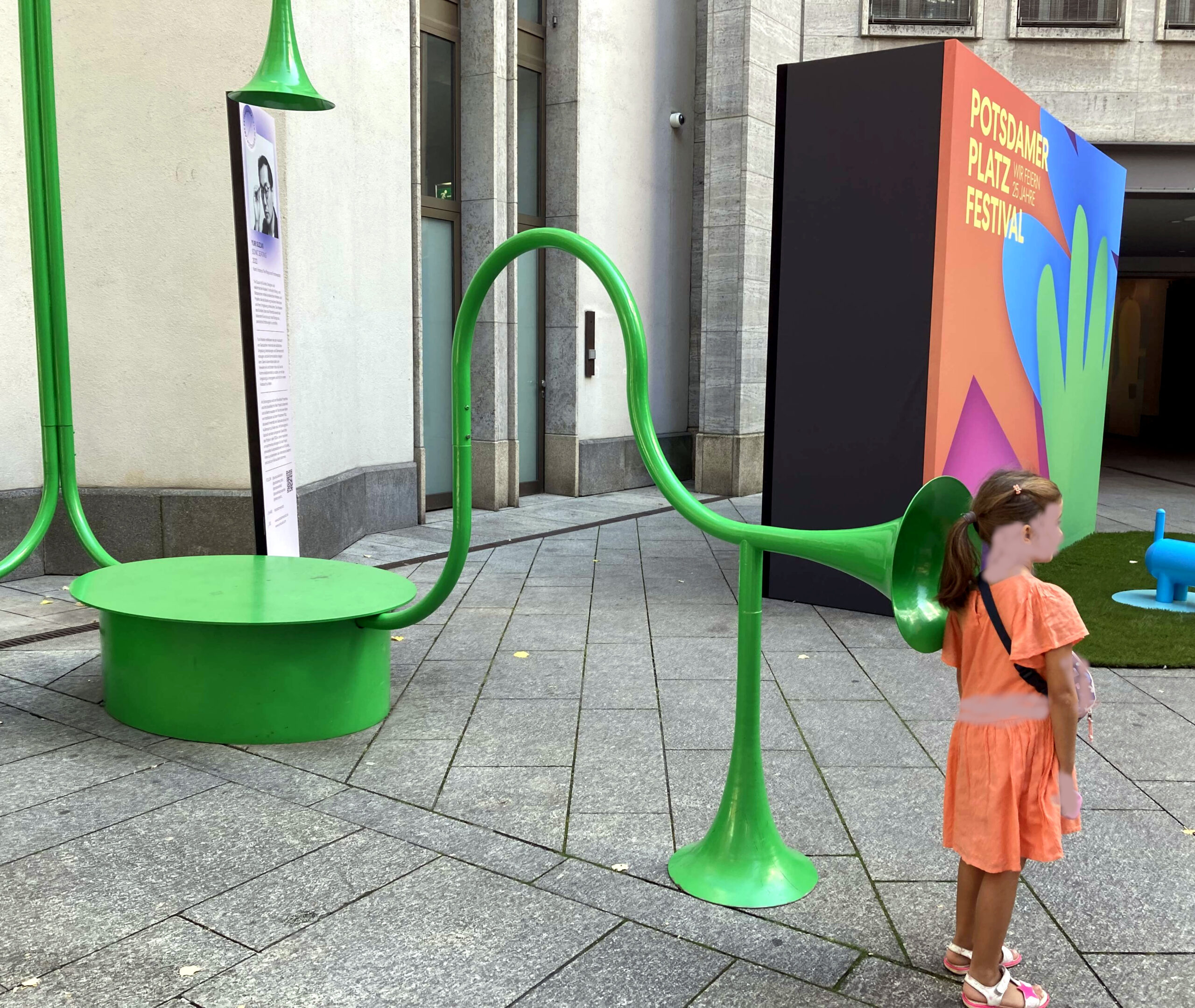 Die großen Besucherströme bleiben heute am Samstag aus. Vielleicht war das Wetter zu schön für einen Festivalbesuch am Potsdamer Platz, der nach seiner Eröffnung immer noch viel zu vielen alte und neue versiegelte Flächen hat.