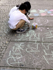 Die Malwand ist nur eine der Spielmöglichkeiten für Kinder in „The Playce“.