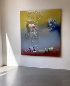„….In den ausgestellten Gemälden beschäftigt sich Martin mit jenen Personen unserer Gesellschaft, die den Status quo zugunsten einer bigotten Existenz ablehnen…..“ (Text von Philippa Boltze übersetzt von Eva Hubich)