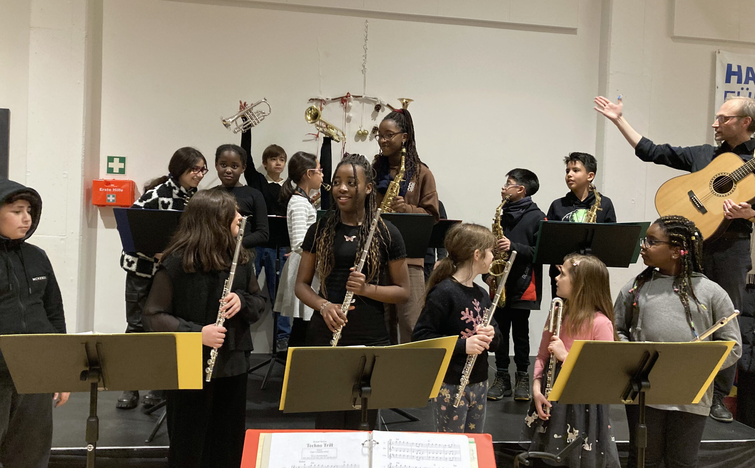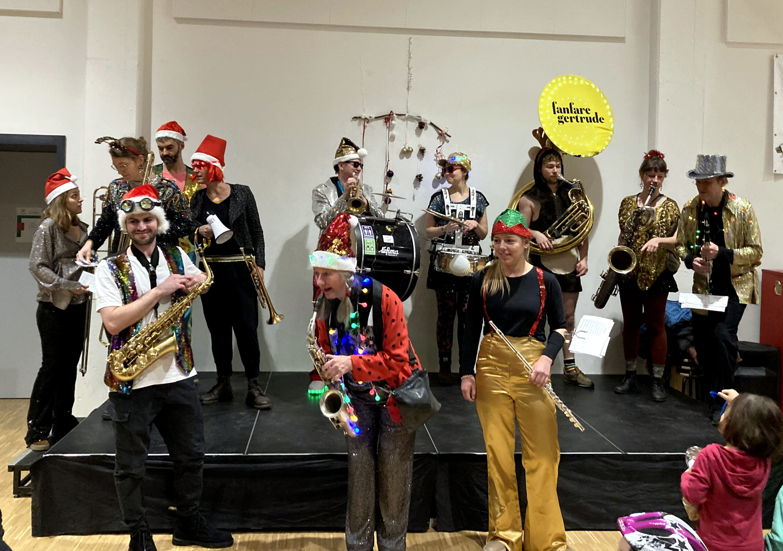 Die Schüler*innen der Bläser AG von der Allegro Grundschule zeigten ihr Können und am Abend spielte die funky Rock-Pop Brassband „Fanfare Gertrude“ in bunt schillernden Kostümen ihre mitreißende Musik.