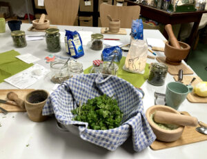 „wachsenlassen“ bot allen Besucher*innen an, Kräutersalz mit den Kräutern aus dem Gemeinschaftsgarten einmal selbst herzustellen.