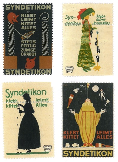 Bild 3: Reklamemarken für den Klebstoff Syndetikon der gleichnamigen Firma des Otto Ring aus der Blumenthalstraße 18 (Quelle: Berlin-Brandenburgisches Wirtschaftsarchiv mit freundlicher Genehmigung).