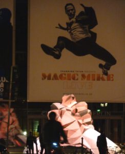 „Unity“ eine riesige Installation am Marlene Dietrich Platz, gestaltet von der australischen Künstlerin Zara Pasfield in Zusammenarbeit von Pineapple Design Studio und Chimera Atelier. Die viereinhalb Meter hohe Skulptur zeigt zwei Hände, die sich gegenseitig umklammern.