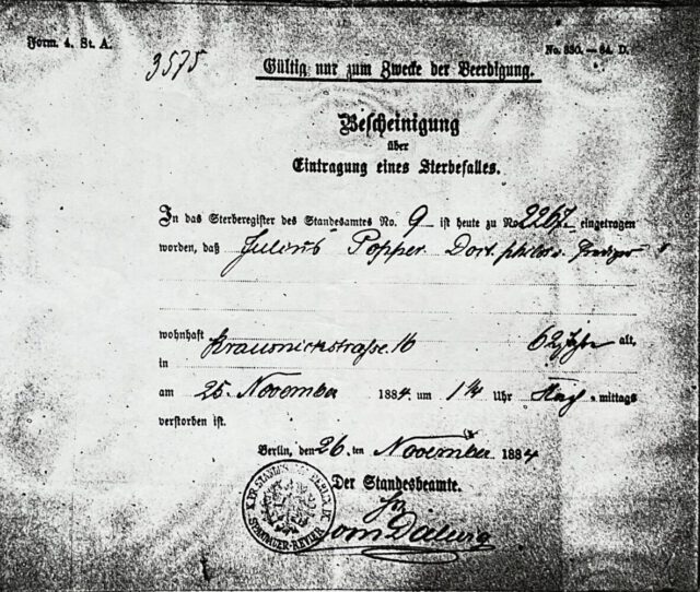 Bresslau wurde später Professor und eine wichtige Stimme in der Debatte um den Antisemitismus in Preußen. Dass er seinen Mentor Julius Popper namentlich ehrte, zeigt welchen Eindruck dieser hinterlassen hatte.