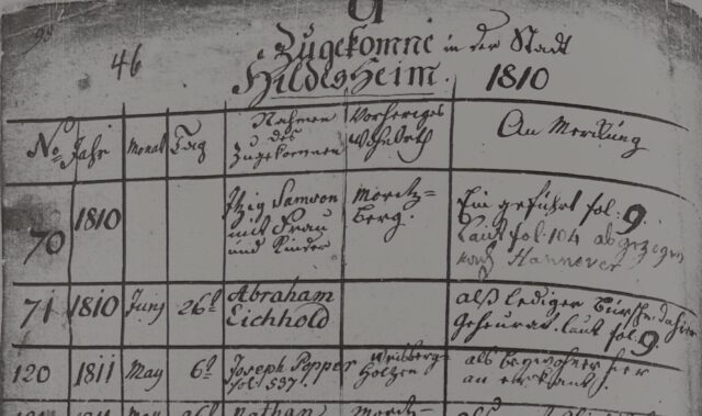 Bild 4. Joseph Popper übersiedelt von Wrisbergholzen nach Hildesheim im Jahr 1811 (aus: (3)).