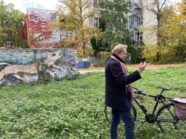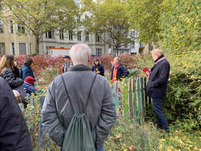 Zweite Station war der Gemeinschaftsgarten Wachsenlassen auf dem Areal der Villa Lützow. Gabriele Koll erklärte die Bedeutung eines naturnahen Geländes, das für alle Bürger zugänglich ist und Raum für Insekten und Vögel bietet. Wachsenlassen veranstaltet häufig Workshops, auf denen Pflanzen und Saatgut getauscht werden und naturnahes Gärtnern vermittelt wird.