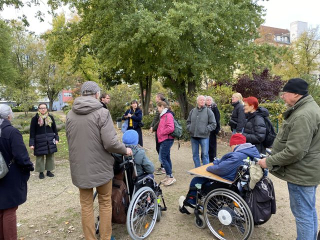 Am Montag, 20. Oktober, hatte die Stadtteilkoordination zwei Bezirksstadträte eingeladen, um im Rahmen eines Spaziergangs durch Tiergarten-Süd verschiedene Themen und Wünsche der Nachbar:innen zu besprechen. Diesmal nahmen sich Christopher Schriner, Bündnis 90/Die Grünen, Bezirksstadtrat für Ordnung, Umwelt, Natur, Straßen und Grünflächen, und sein Kollege Ephraim Gothe, SPD, Bezirksstadtrat für Stadtentwicklung und Facility Management, zwei Stunden Zeit, um mit Bürger:innen vor Ort ins Gespräch zu kommen.