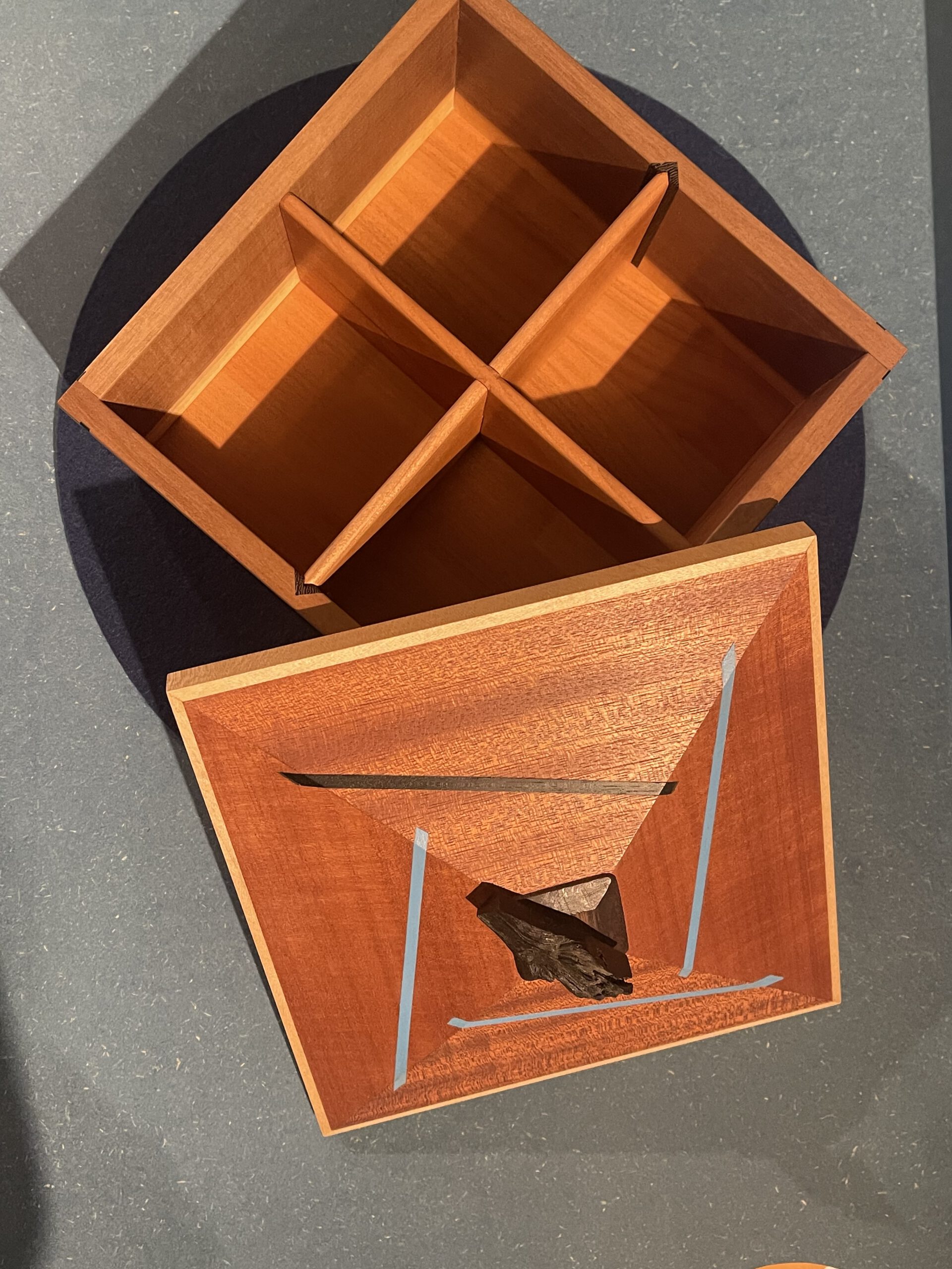 Ein Schatzkästchen aus neun edlen Holzarten (wie Ahorn, Kirschbaum, Jacaranda) mit vier Fächern hat der britisch-deutsche Möbeltischler Michel O’Meara produziert. „Nur eine gesunde Umwelt bringt prächtige Bäume und wunderbares Holz hervor“, stellt er fest und hofft, dass es ihm gelungen ist, die „inhärente Schönheit der Hölzer zur Geltung zu bringen“. Die sichtbaren Holzverbindungen sind mit Schwalbenschwanztechnik ausgeführt.