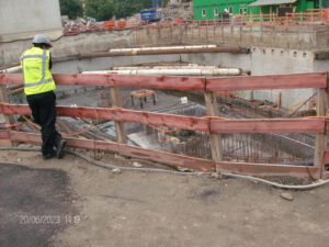 Das Constanze-Pressehaus an der Kurfürstenstraße / Ecke Schillstraße ist schon Geschichte. Eine tiefe Baugrube klafft an der Stelle.