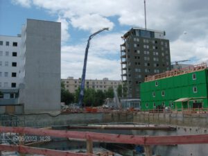 Hinter der Baugrube des Constanze-Pressehauses wird ein Hochhaus mit Wohnungen abgerissen und wir haben wieder weniger Wohnungen. Dafür wird stattdessen wiederum ein Bürohochhaus errichtet.