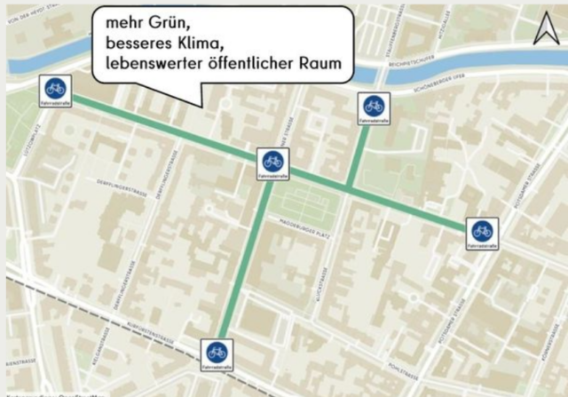 Vorgesehen sind unter anderem neue Fahrradstraßen, Maßnahmen zur Verkehrsberuhigung sowie mehr Grünflächen und Aufenthaltsbereiche.