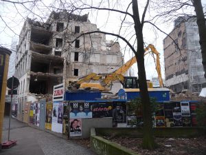 Das Gebäude der Flüchlingsunterkunft und das danebenliegende Jugendstilhaus werden gerade abgerissen . Als Neubau soll es ein Bürogebäude mit einer Bürogeschossfläche von ca. 7.500 m2 geben.