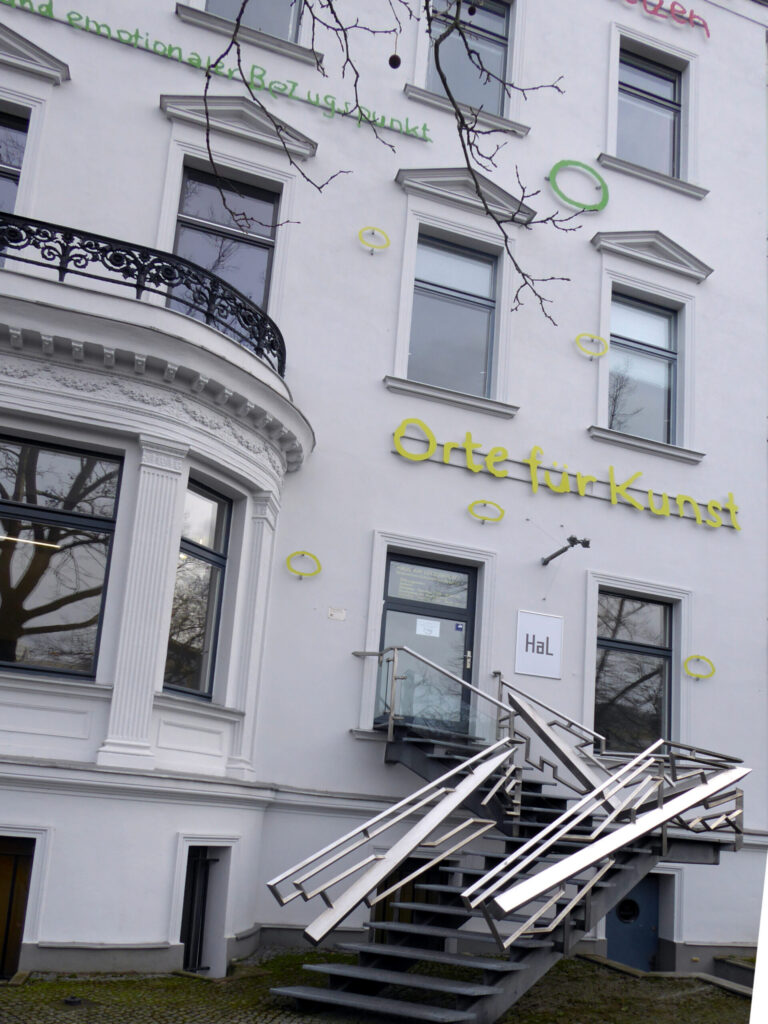 Das Haus am Lützowplatz (HaL) baut (mittendran vom 2. Februar 2024), und zwar ein Atelierhaus hinter der heutigen Galerie auf einem seit Jahren brachliegenden Gelände. Was bei der Ausstellungseröffnung am 9. Februar 2024, bei der dieser Plan verkündet und das