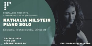 Die Solopianistin Nathalia Milstein spielt Werke von Claude Debussy (Suite Bergamasque), Peter Tschaikowsky (Thema und Variationen F-Dur, op.19 n.6) und Franz Schubert (Wanderer-Fantasie C-Dur op.15).