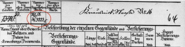 Einen Hinweis gab es jedoch: Seit mehr als 300 Jahren sind alle Häuser in Berlin zwangsversichert bei der Feuersozietät, seinerzeit eine staatliche Versicherung. Diese hatte jedes Gebäude, jeden Eigentümer und Eigentümer-Wechsel und den jeweiligen Wert der Immobilie (das Wohnhaus und seine Ausstattung, minus des Grundwerts, der ja bei einem Brand des Hauses erhalten bleibt) in Registern notiert. Für das Haus Krausnickstraße gab es solche Eintragungen (Bild 1) für das Jahr, in dem die Familie Popper das Haus erwarb, für das Jahr, in dem die Währung von Taler auf Mark umgestellt wurde (1873) und für den Zeitpunkt des Verkaufs 1899. Und hier war vermerkt: Hypothekenbuch Vol. 58 Blatt 3223. Aber eben keinen Hinweis auf die Finanzierung, die ja auch für die Versicherung uninteressant ist.