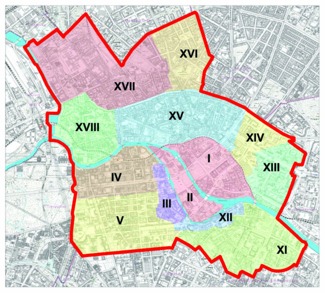 Bild 2: Die Stadtbezirke von Berlin-Mitte im Jahr 1920 (Groß-Berlin), XIV ist die Königsstadt, XV die Spandauer Vorstadt (Karte: Zentral- und LAndesbibliothek Berlin, ZLB, gemeinfrei).