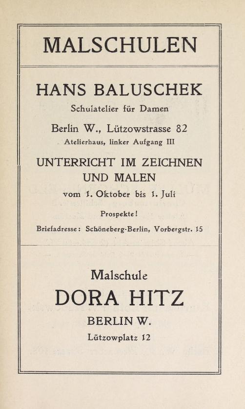 Bild 4: Anzeige von zwei Malschulen im Lützow-Viertel (Quelle: Katalog der Berliner Secession 1809).