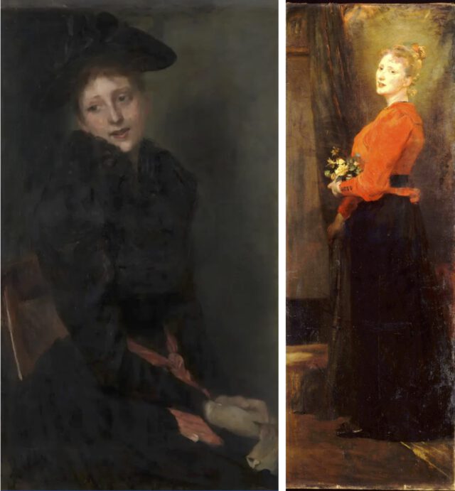 Bild 5: Zwei mal Maria von Brocken, gemalt von Dora Hitz; links: um 1891, heute: Museum Behnhaus Drägerhaus Lübeck; rechts: um 1891, heute Museum der Stadt Nürnberg).