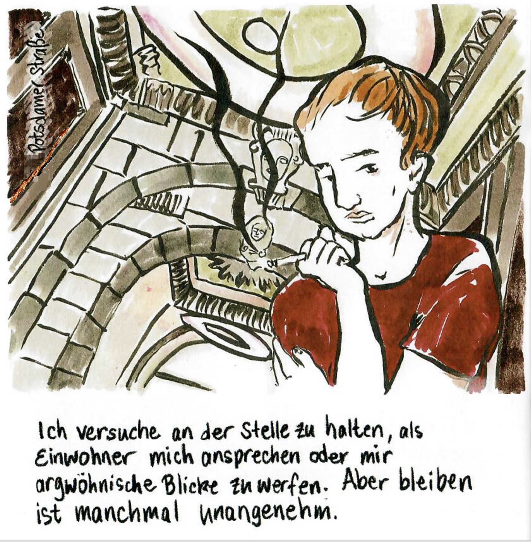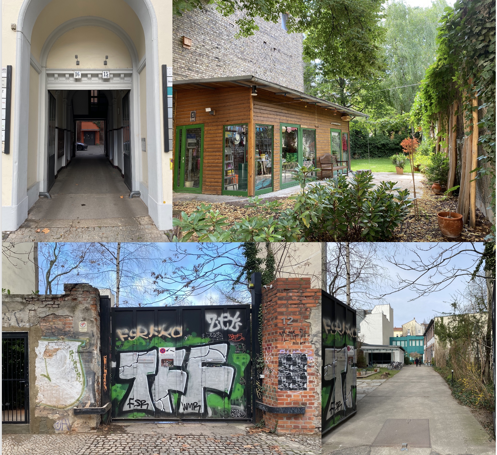 Manchmal hat man Glück und wird nicht kritisch beäugt (Bild 1), wenn man neugierig in Hinterhöfe schauen möchte, die normalerweise verschlossen sind. Eines Morgens stand das Tor der Potsdamer Straße 93 offen und erlaubte einen Blick auf eine idyllische kleine Gartenanlage dahinter – aber ich wurde ausdrücklich gebeten, meine Fotos nicht zu veröffentlichen, zu viele würden dann klingeln und fragen.