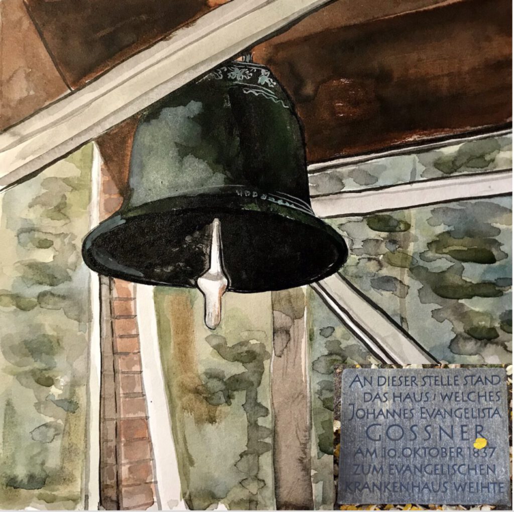 Vier Augen sehen mehr als zwei, aber manchmal sehen 2 x 2 Augen auch etwas völlig anderes, wenn sie auf das Gleiche schauen. Lia, die kanadische Zeichnerin (s. mittendran.de vom 28.4.2021), sieht den Kiez von heute mit anderen Augen als Paul, der Historiker und Autor von den „Straßen im Kiez“; heute: Die Glocke an der Elisabeth-Klinik.