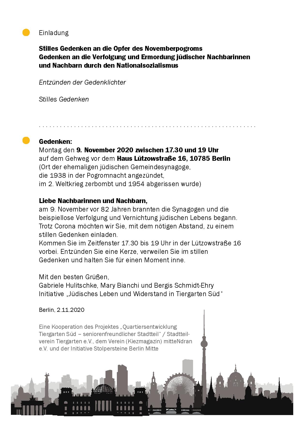 Liebe Mitbürger*innen leider müssen wir die für den 9.November 2020 geplante Gedenkfeier in der vorgesehenen Form Corona-bedingt absagen!