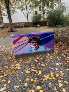 Die zuletzt Anfang des Jahres frisch gestalteten Verteilerkästen von Stromnetz Berlin werden jetzt wieder aufgehübscht. Die durch Blüten, Blätter und Straßenstaub unansehnlich gewordenen Graffiti werden mit den gleichen Farben und im gleichen Design nachgesprayt.