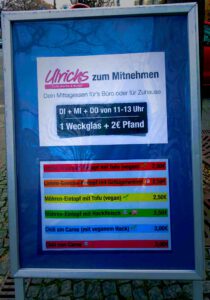 Coronabedingt können im „Café Ulrichs“ derzeit keine Veranstaltungen stattfinden, aber ein Mittagessen zum Mitnehmen gibt es hier immer dienstags, mittwochs und donnerstags von 11-13 Uhr.