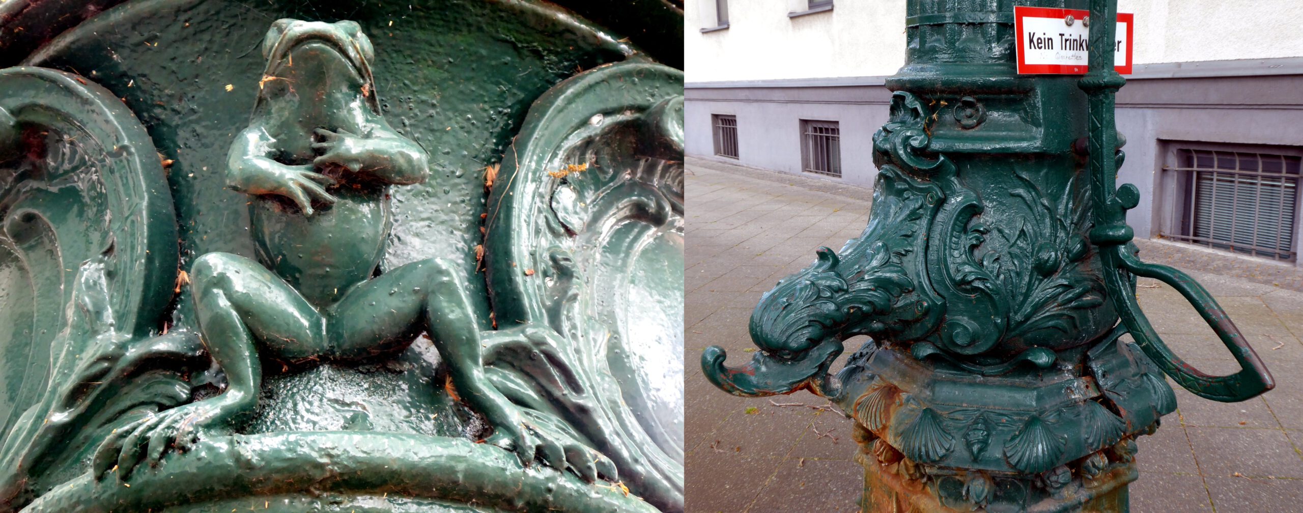 Sie stehen an Berlins Straßenrändern, unsere grünen, handbetriebenen, gusseisernen Wasserpumpen. Die „Historischen“ unter ihnen sind besonders hübsch verziert mit ihren Girlanden, Blumenmustern, Fröschen, Fischen und Muscheln. Manche Pumpen befinden sich schon mehr als 100 Jahre an ihrem Platz.