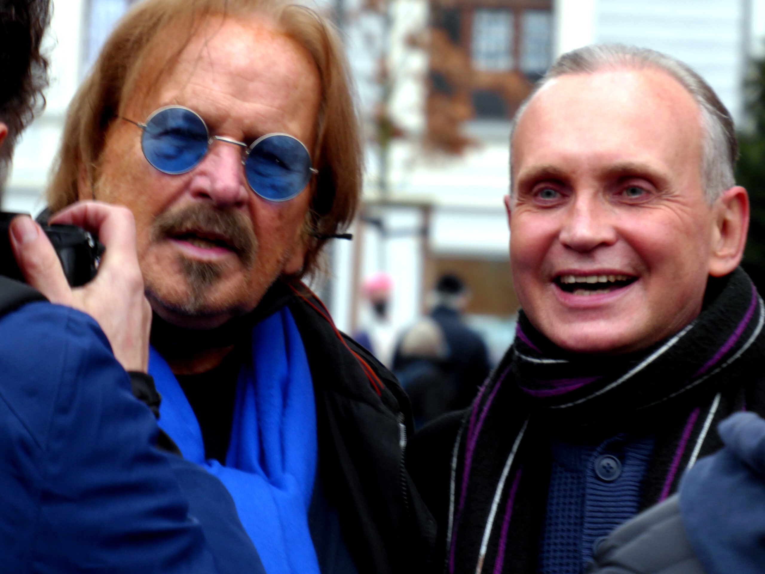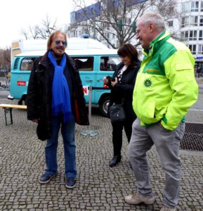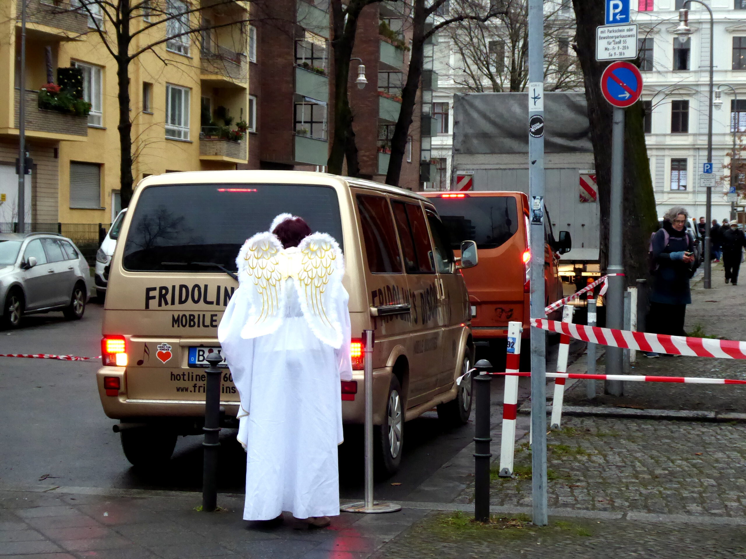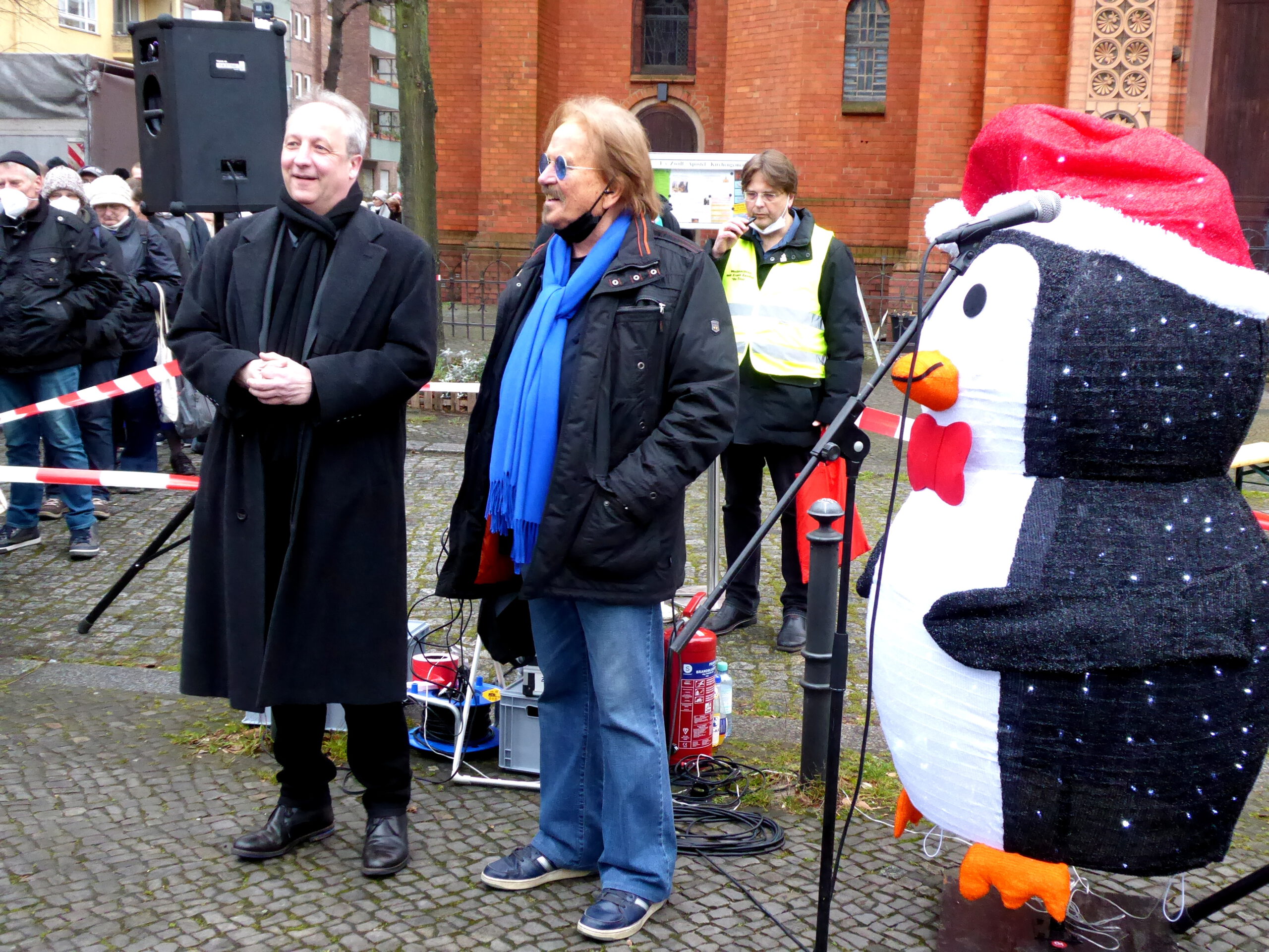 Heute waren Frank Zander, sein Sohn Marcus und sein Team nicht nur mit dem Caritas-Foodtruck vor der Ev. Zwölf-Apostel-Kirche, sie alle wurden zusätzlich von der GdP (Gewerkschaft der Polizei/Bundespolizei) und dem Weihnachtsmann Bernd König („DJ Fridolin“) und seinem Engel (seine Frau „DJ Fridoline“) der mobilen Discothek „Fridolin’s Disco“ unterstützt.