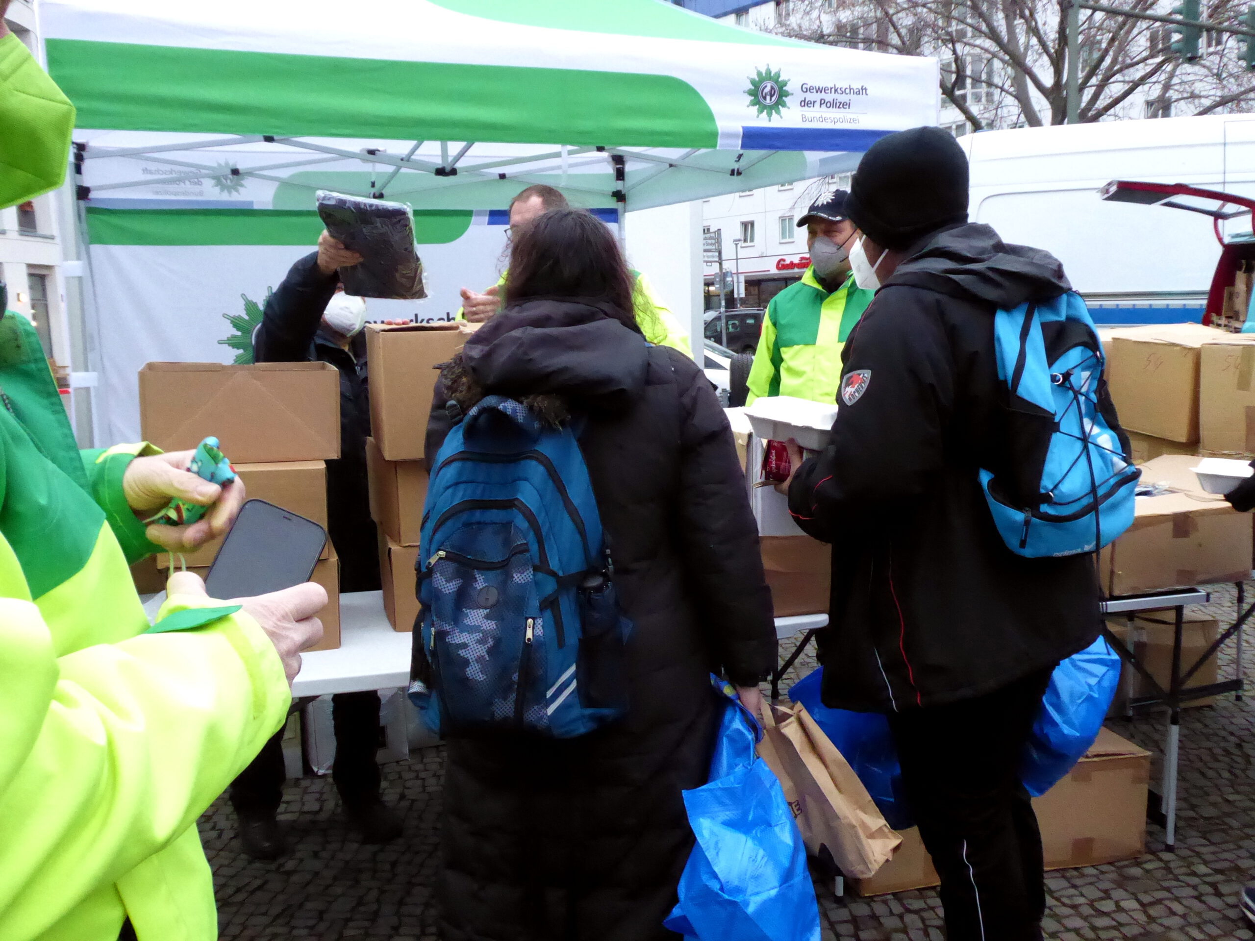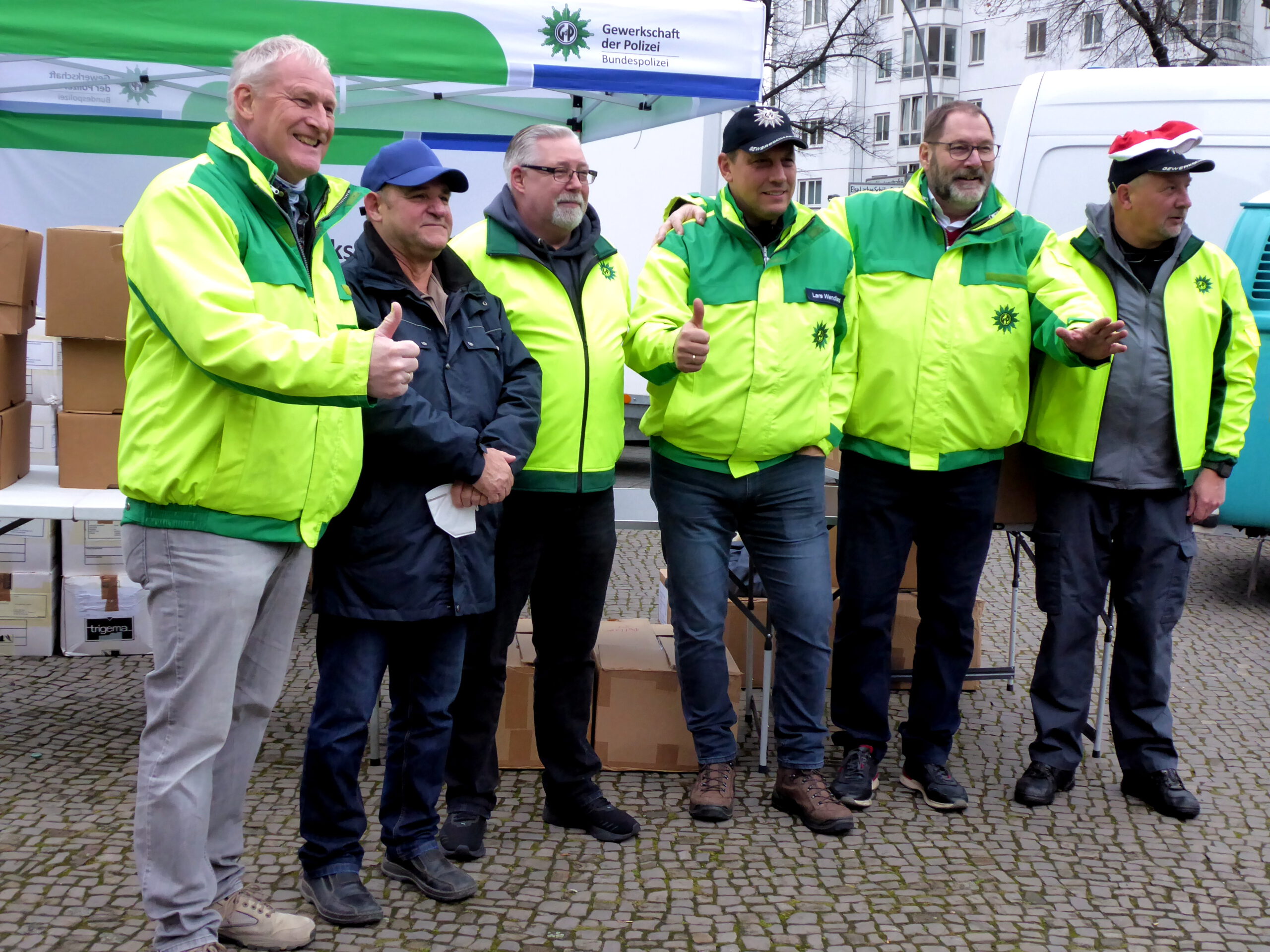 Die GdP hatte Pullover, Hosen und warme, gefütterte Lederhandschuhe dabei, die von den Dienststellen im ges. Bundesgebiet gespendet wurden.