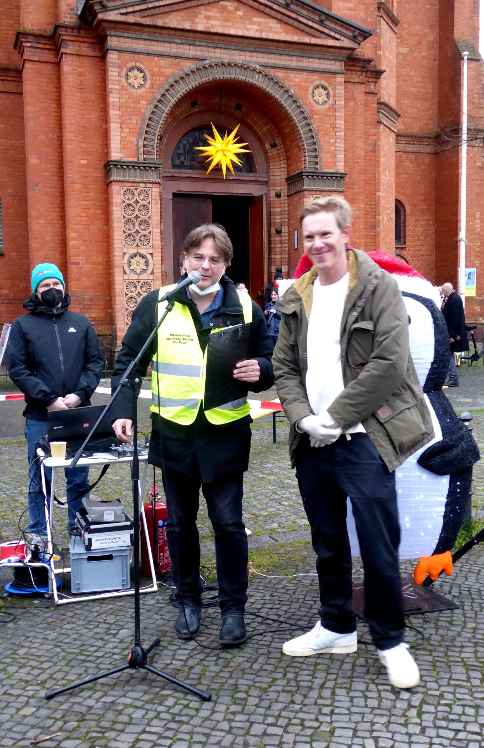 Marcus Zander bedankte sich erst einmal bei allen Unterstützer*innen und Helfer*innen. Auch Bischof Christian Stäblein, der geistliche Leiter der Evangelischen Kirche Berlin-Brandenburg-schlesische Oberlausitz, begrüßte die Menschen vor der Kirche.