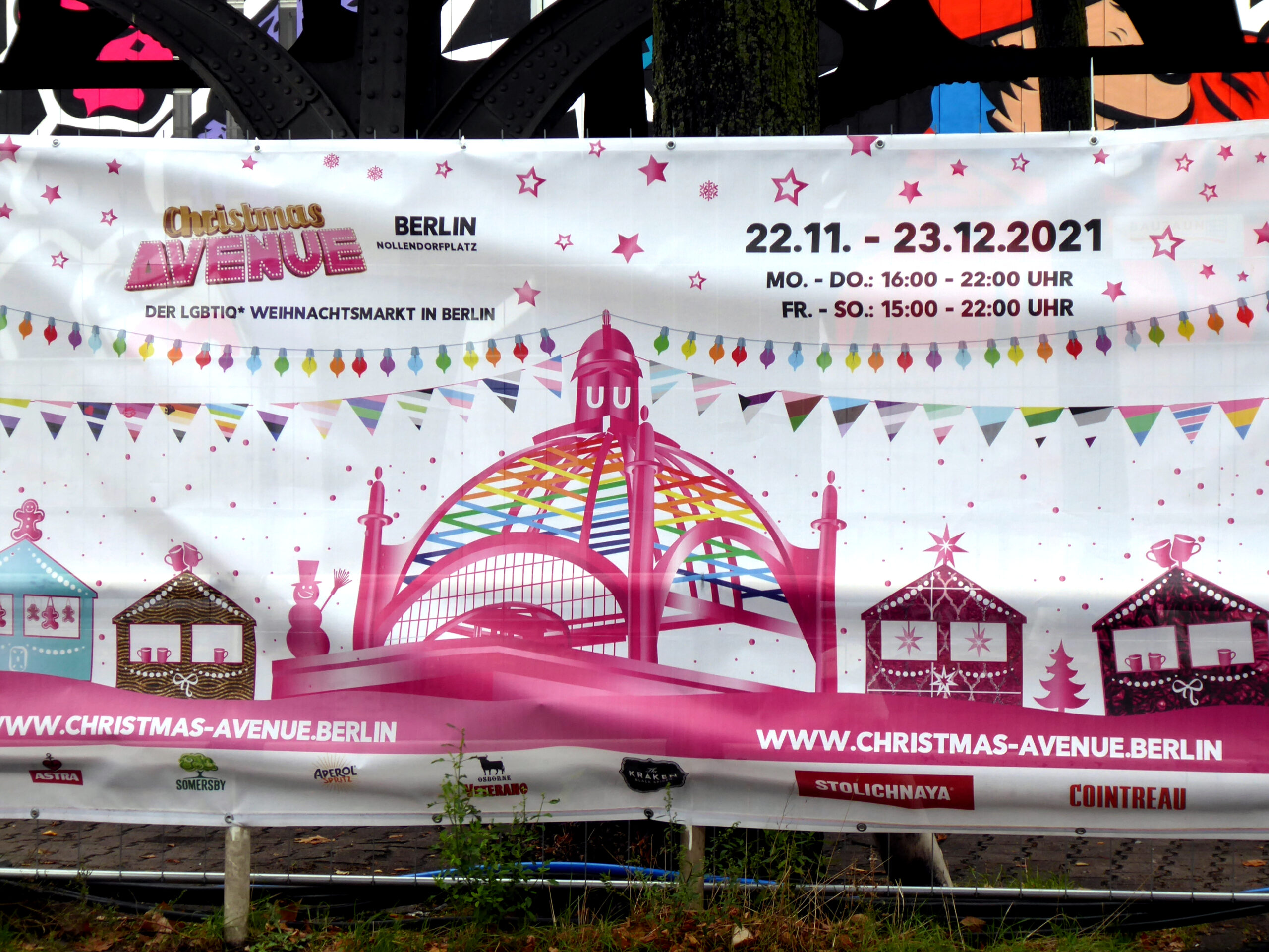 Im Anschluss an die „LGBTIQ* Winterdays“ lässt schwul-lesbische Community 2021 erneut einen Weihnachtsmarkt „Christmas Avenue – LGBTIQ* Weihnachtsmarkt 2021“ am Nollendorfplatz mit hochwertigen Produkten und buntem Lichtkonzept stattfinden.