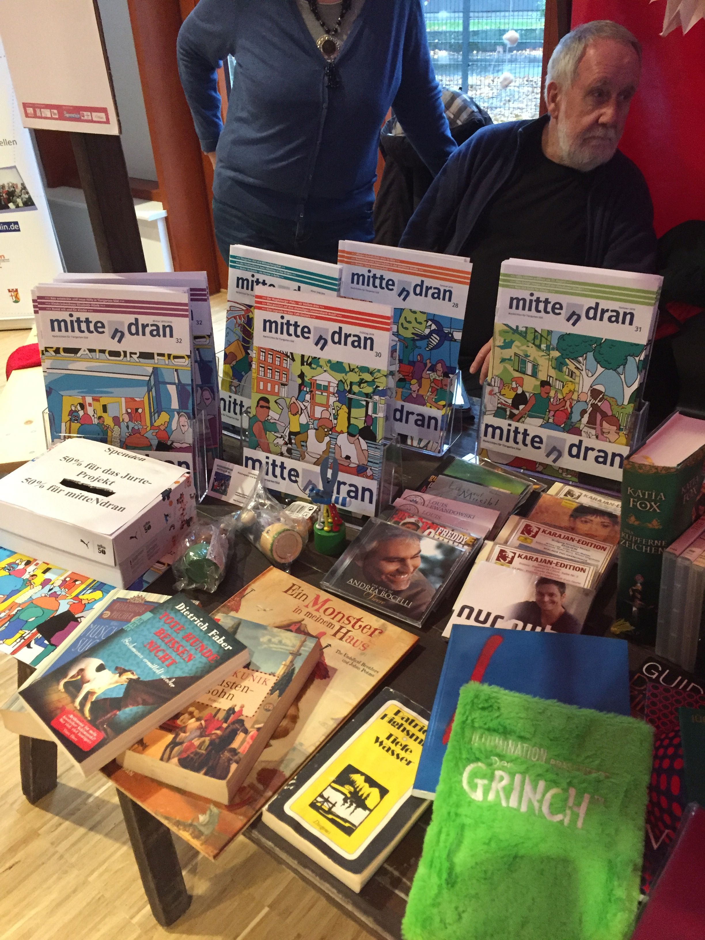 Neben den Ausgaben der mitteNdran Hefte konnten auch Bücher und DVDs mitgenommen werden, gegen eine kleine Spende. (Foto: ASE)